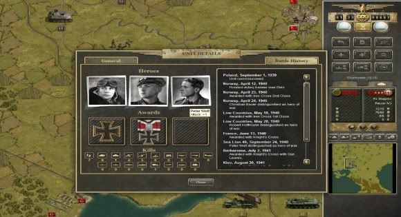 As I mentioned earlier, units that perform well – and survive! - in combat will be awarded various medals, such as the Iron Cross. Even better, units will even occasionally see heroes emerge that boost their abilities, such as getting bonuses in attack, defense and even mobility. All this information is handedly displayed in the unit’s battle history screen, one that I found can make for fascinating reading after a few battles as it provides a neat chronology of the units various exploits, even to the point of listing the particular cities captured by the unit. This detailed unit history really gets the player invested in the outcome of battles. Let me assure you, there is nothing more heart wrenching that being overly aggressive with one of your honored units and losing it in battle! Argh, the tragedy! Of course, this also forces another decision on the player: do you risk your best units in a risky attack in the hopes of a big breakthrough? Or do you play it safe and save them for later, even if this means a delay in your attack? Decisions, decisions….
